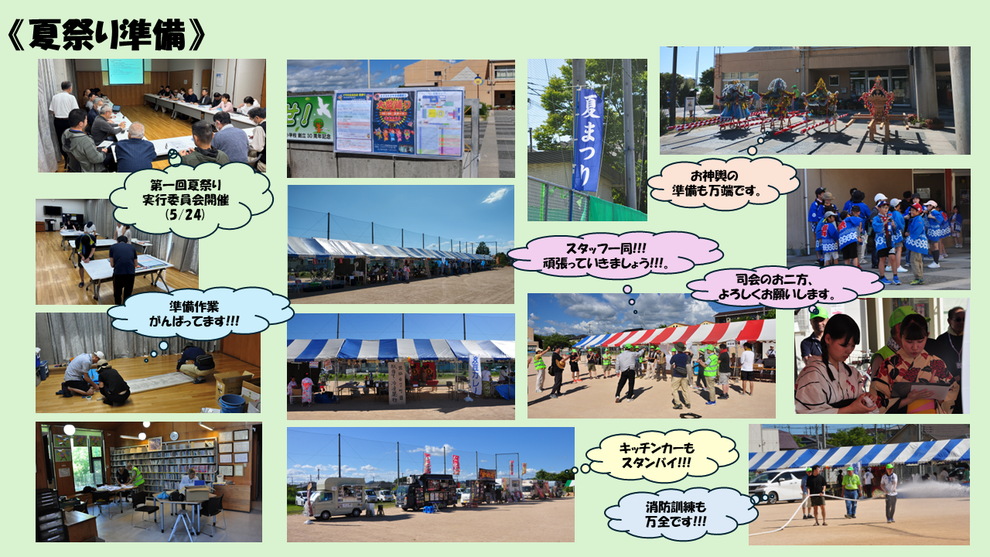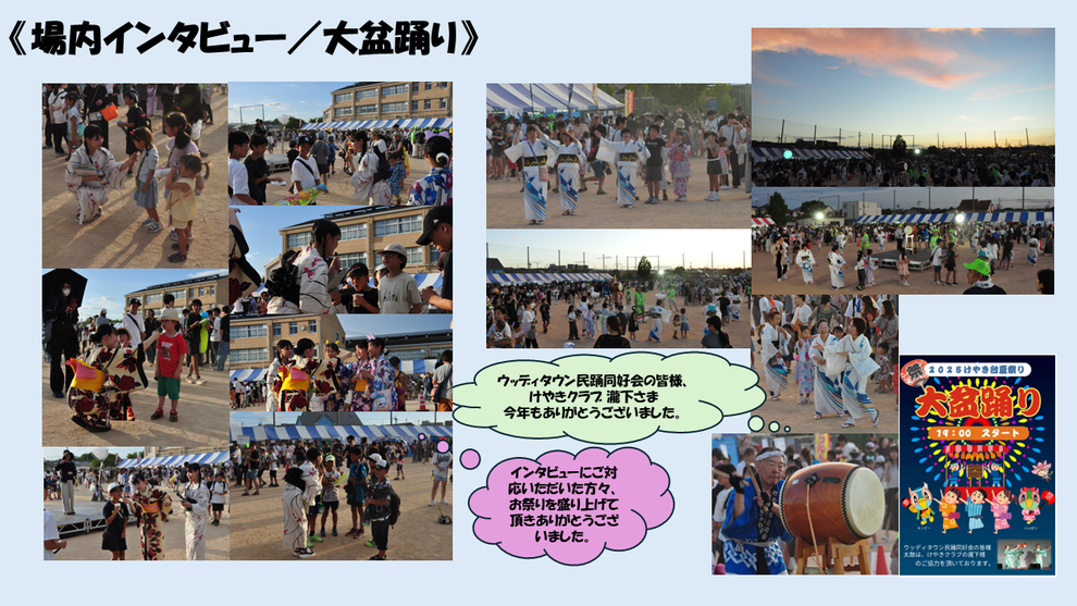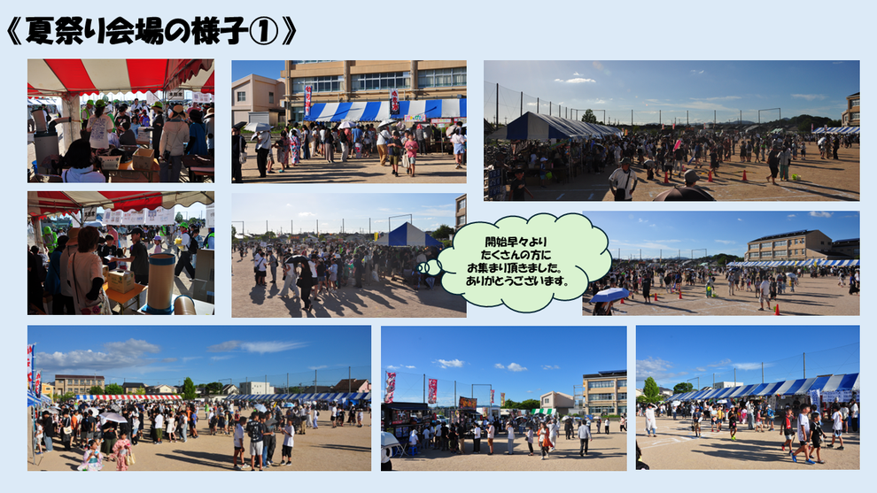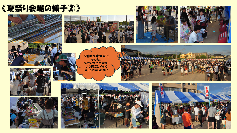 夏祭りの状況を次のとおり掲載しますので、会場の盛り上がりをご堪能下さい。